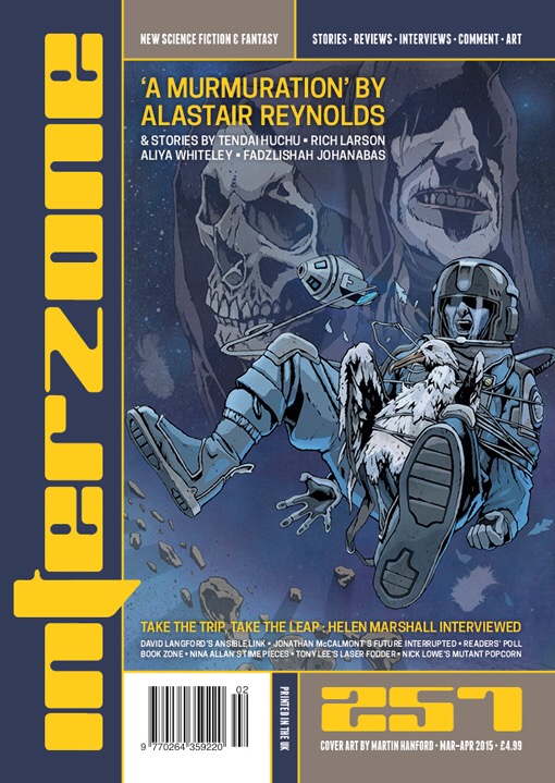 Cover of Interzone Issue 257, March 2015. Talabi picked Tendai Huchu’s story “The Worshipful Company of Milliners,” which appeared in this issue.
