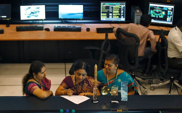 Indian Space Research Organization (ISRO) mission engineers after Mangalyaan’s successful launch on a Polar Satellite Launch Vehicle rocket. Approximately 20% of ISRO employees, and 10% of their engineers, are women. Image credit: AP/Aijaz Rahi